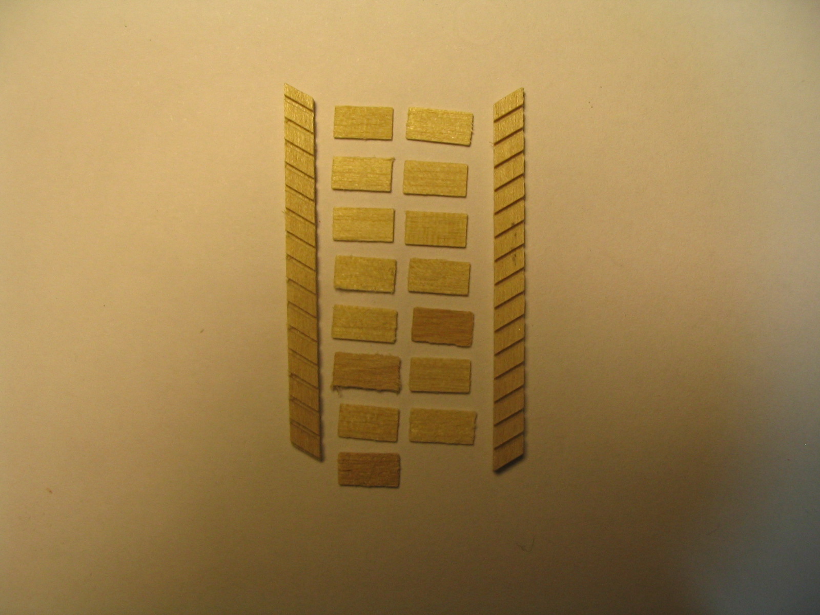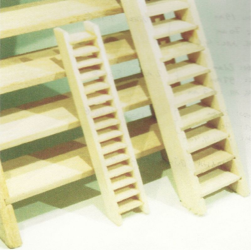 Ahşap demonte merdiven. Genişlik : 10 mm, uzunluk : 36 mm, basamak aralığı: 3 mm. Birim fiyatı : 4.- USD