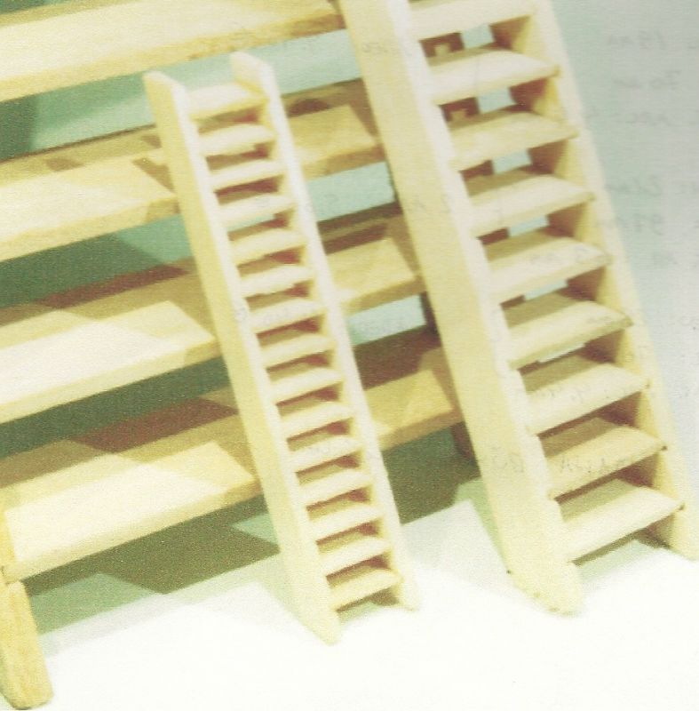 Genişliği 11 mm, uzunluğu 49 mm, basamak aralığı 3 mm olan ahşap merdiven. Birim fiyatı : 2.5 USD