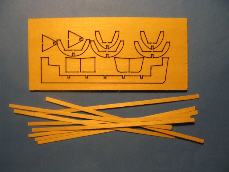 Lazer kesim omurga ve postalar ile sarma çıtalarından oluşan kit sandal. UzunluK 105 mm, genişlik: 31 mm, yükseklik: 21 mm