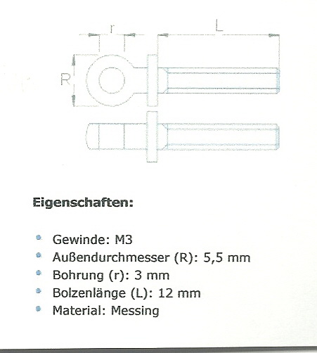 El Tutamağı İçin Pirinç Sap. Kafa çapı : 5,5 mm, delik çapı : 3 mm, vida M3 (Ürün kodu : RBM00155)