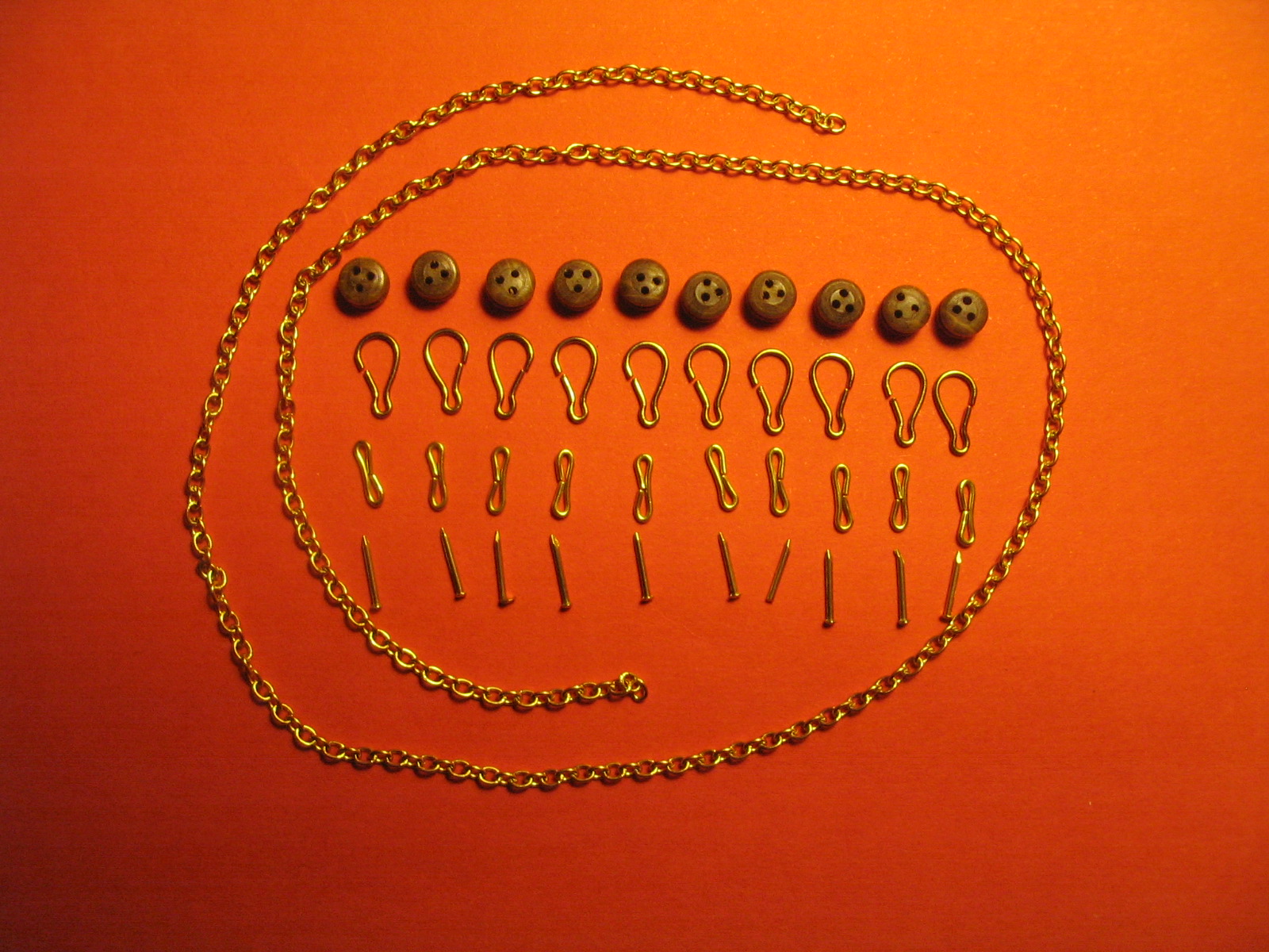 Çapı 5 mm olan Bogota + Bogota çemberi (pirinç) + zincir + Borda çengeli ( pirinç) + pirinç çivi ' den oluşan 1 takım. 1 takımın bedeli : 10.- TL