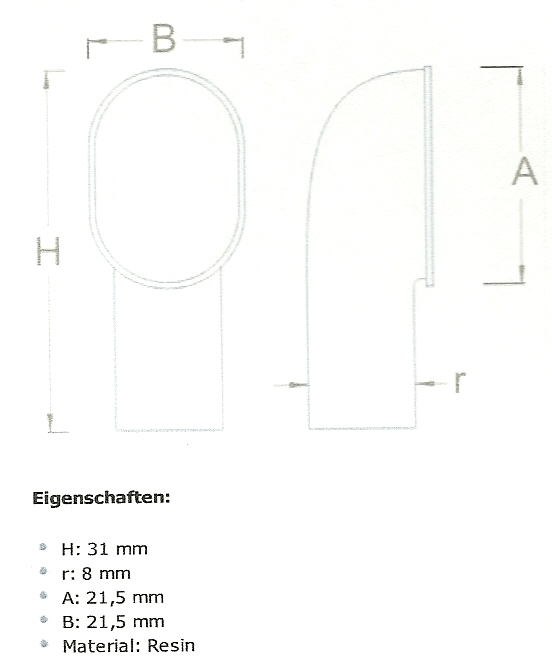 Resin manika . Çap : 21,5 mm. Diğer ölçüleri için teknik resime bakınız. Birim fiyatı : 2.- USD