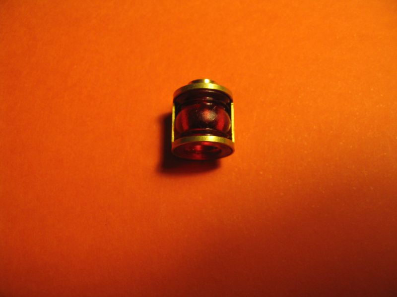 Prinç Seyir Feneri. Çap : 10 mm, yükseklik : 12 mm, cam çapı : 6 mm. Cam rengi : Kırmızı. Camın içi delik olup led ampul yerleştirilebilir.